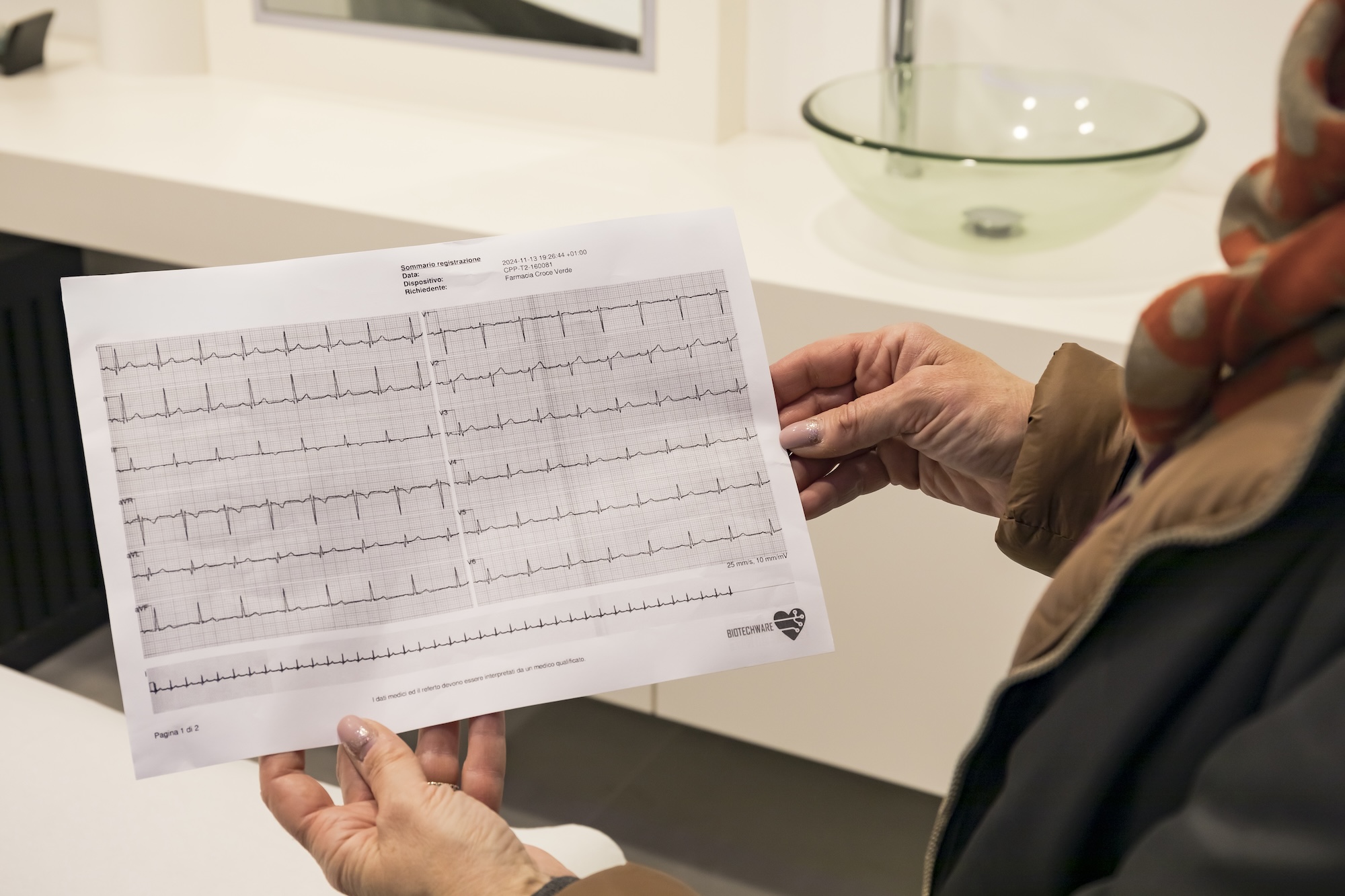 L’elettrocardiogramma viene svolto in farmacia e tramite un servizio di telemedicina i dati vengono trasmessi ad una equipe di cardiologi che refertano e firmano il tracciato entro massimo 24h.